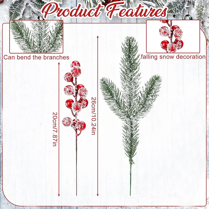 3. Versatile sizes: Pine needle branches come in various sizes, making them a versatile choice for various decorative needs. The three-pronged pine needle branches are approximately 26 cm long, and the berries are approximately 20 cm long.