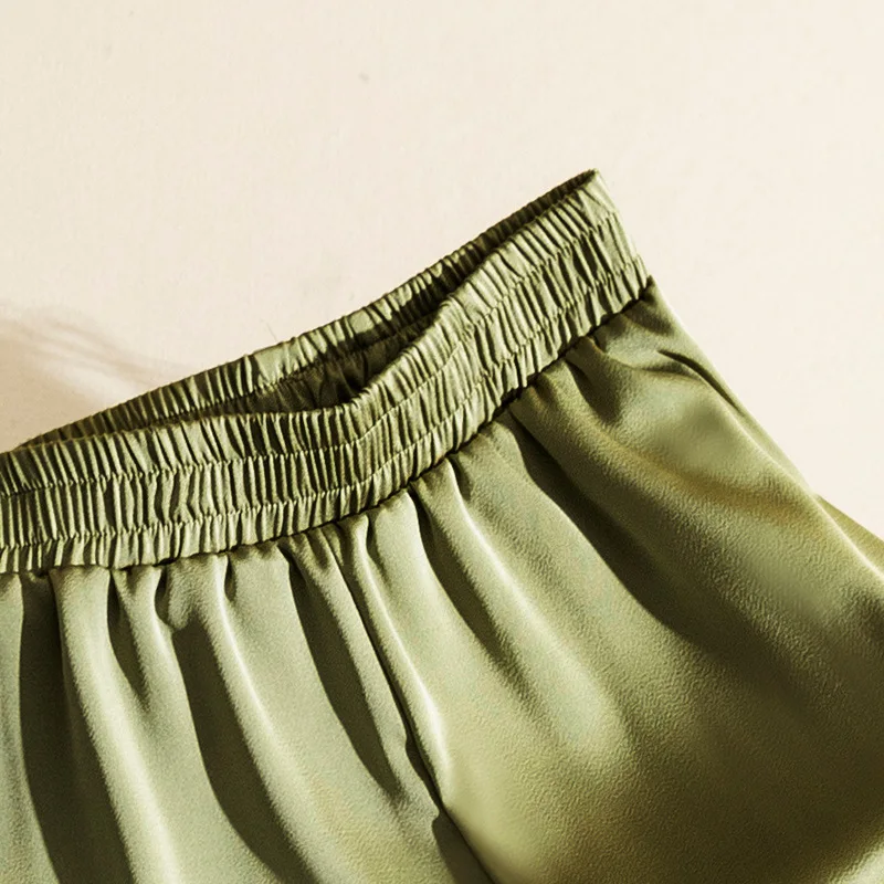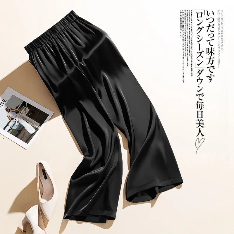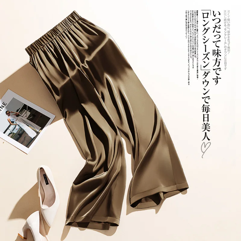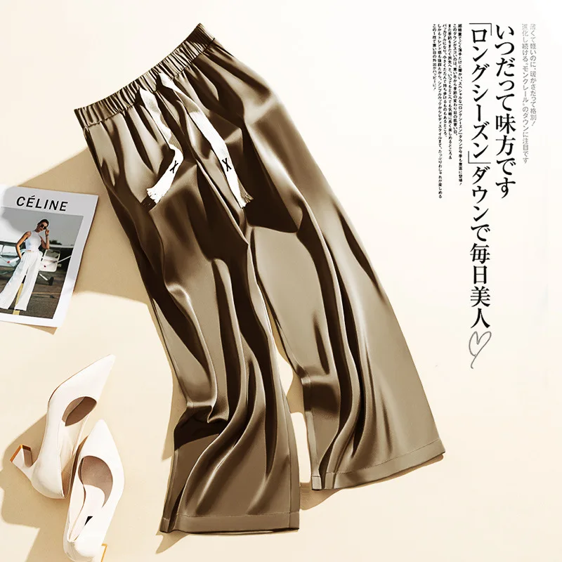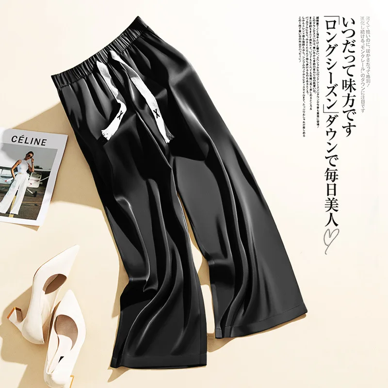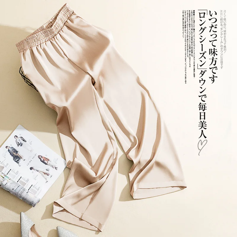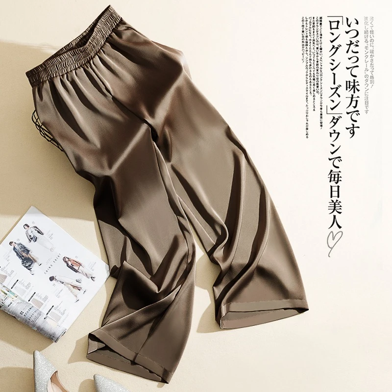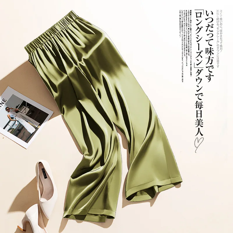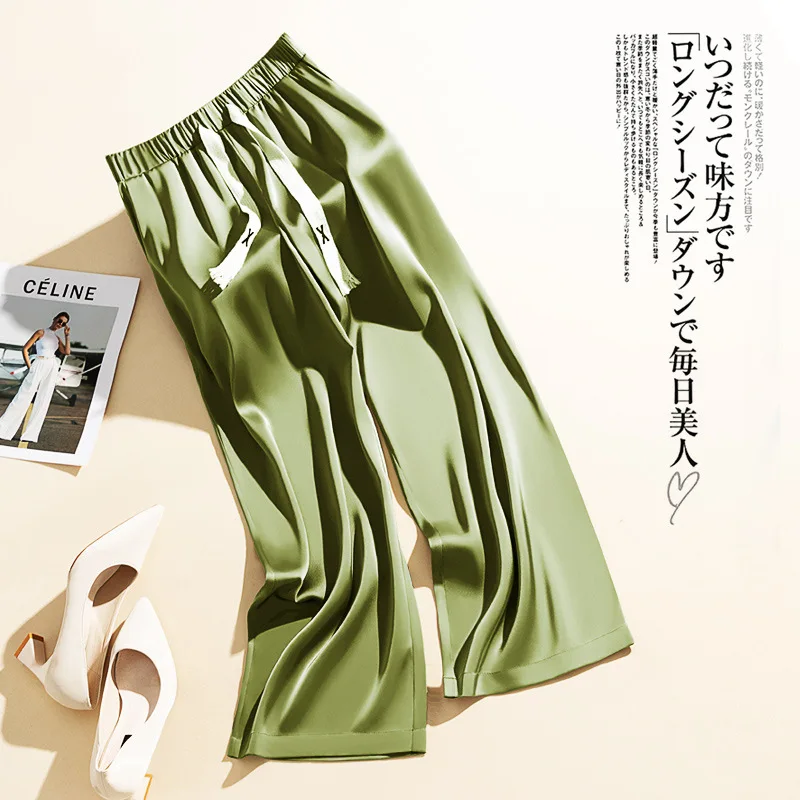 Acetate Satin Wide-leg Pants Women Summer New High-waisted Silk Straight Trousers Ladies Silky Green Korean Fashion Long Pants