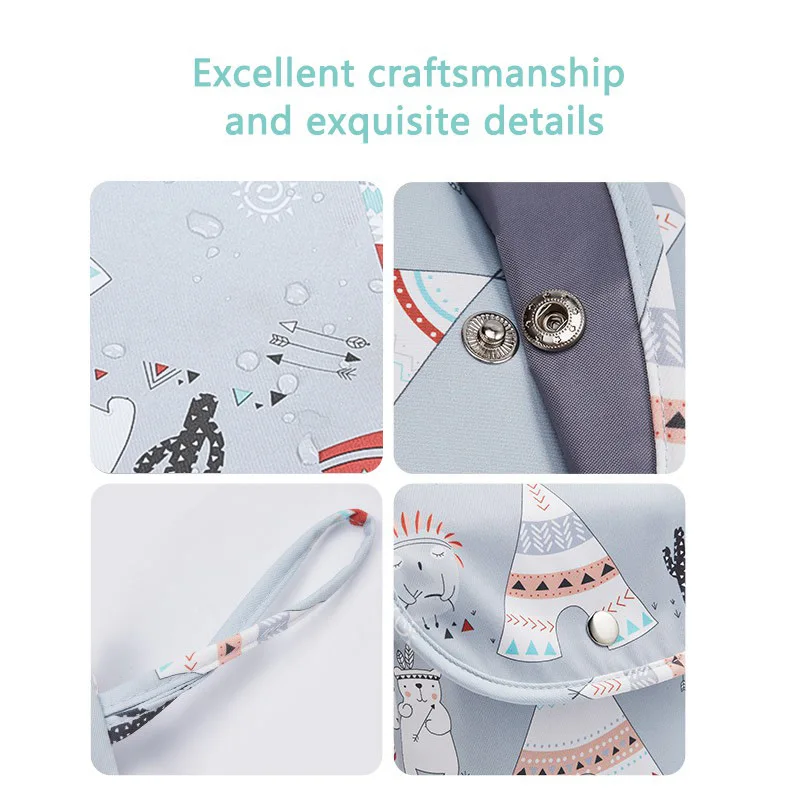 Baby Diaper Bag Cartoon Print Waterproof Wet Dry Nappy Zipper Handbag Stroller Carry Pack Travel Outdoor Wet Diaper Storage Bags