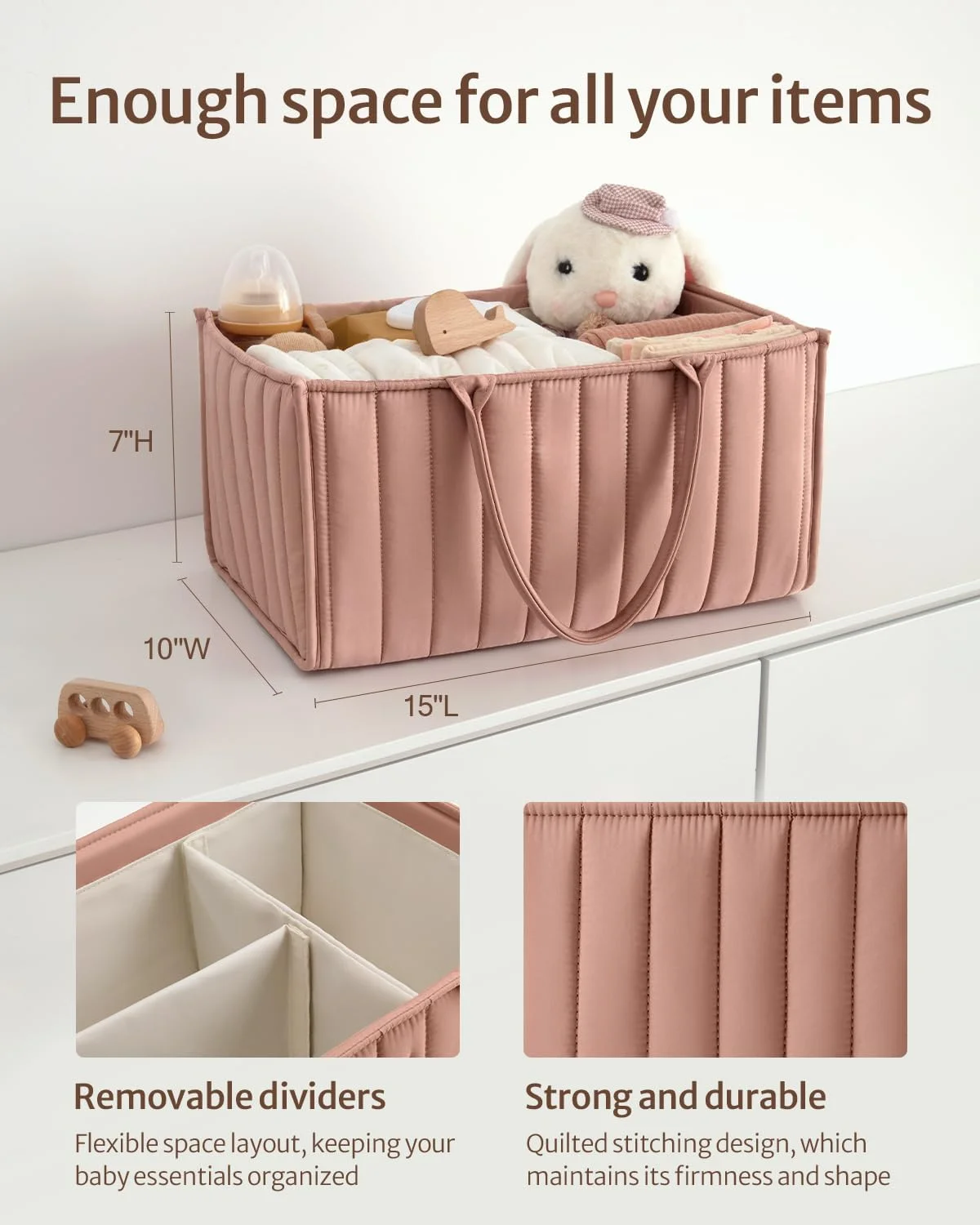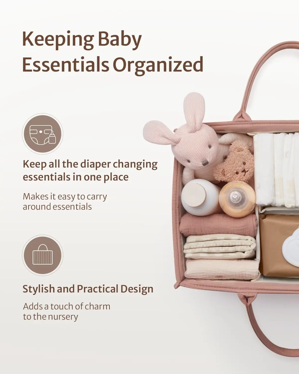 Baby Diaper Caddy Organizer, Baby Shower Basket for Girls Baby Registry Must Have, Stylish Baby Basket for Changing Table