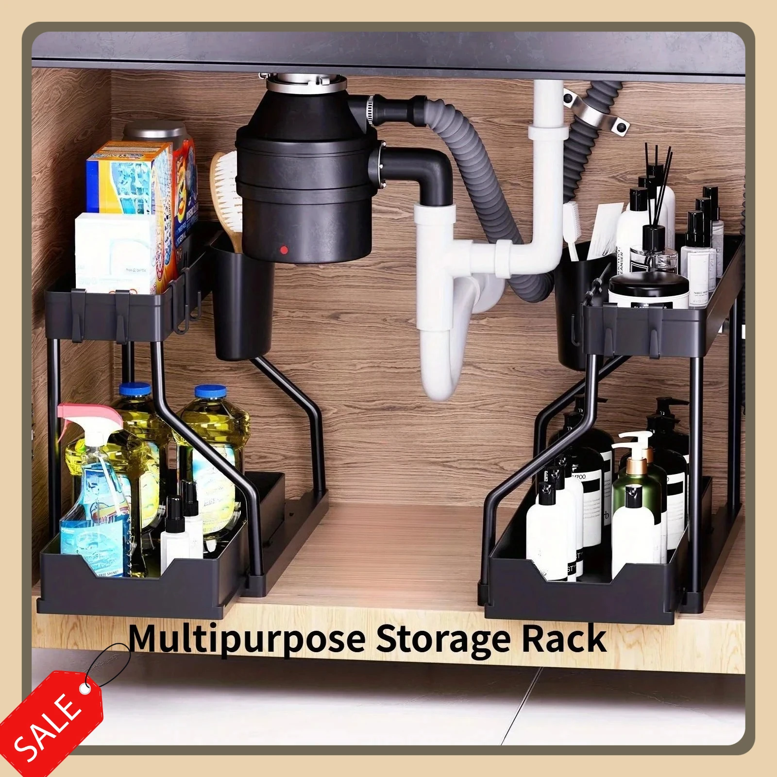 Bathroom & Kitchen Multi-Layer Pull-Out Storage Rack - Clutter Organizer for Sink Area & Seasonings