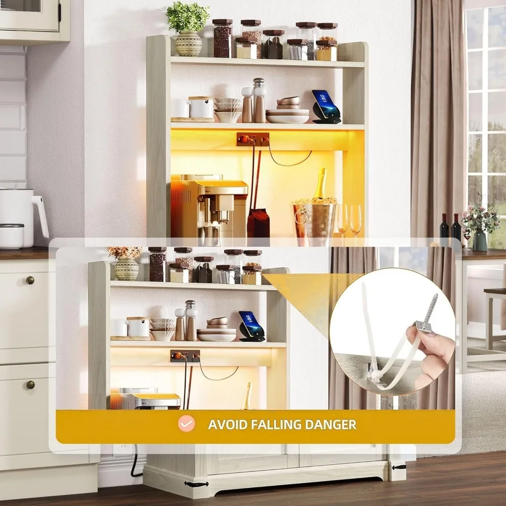 - Seamless Assembly, Maximum Safety: Say goodbye to frustration! Our baker rack cabinet features straightforward instructions and pre-labeled parts for an easy setup. Plus, non-tipping kits ensure added safety, making your kitchen practical and secure