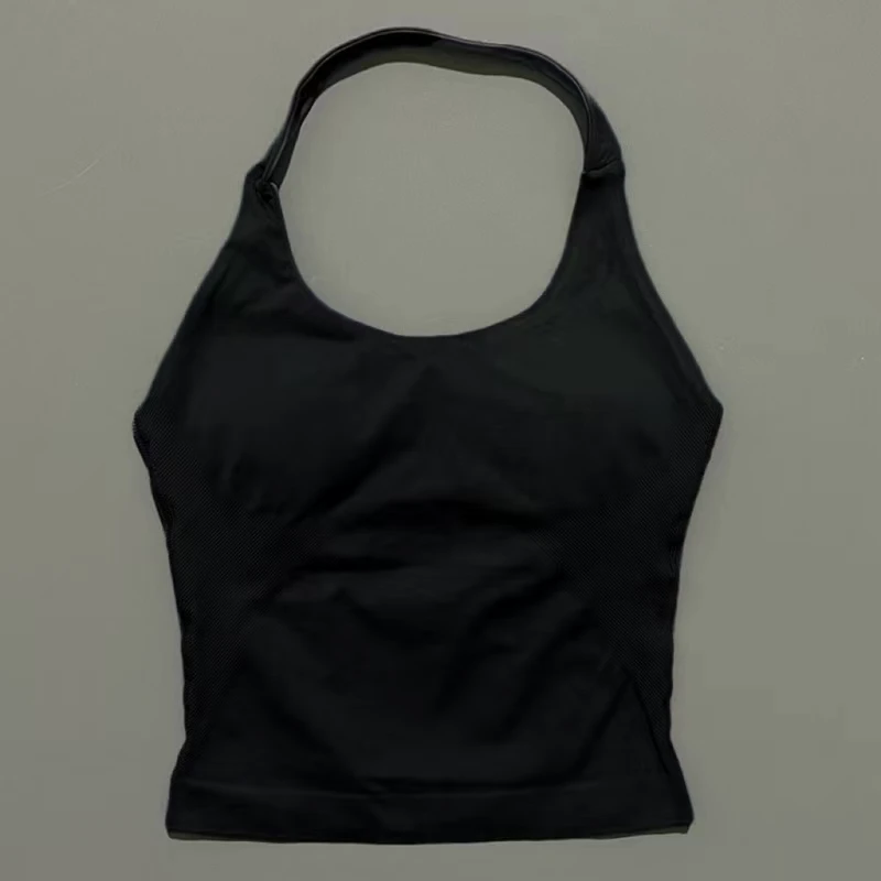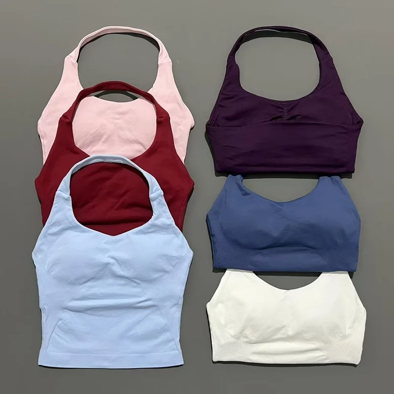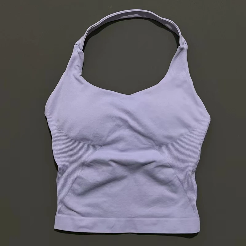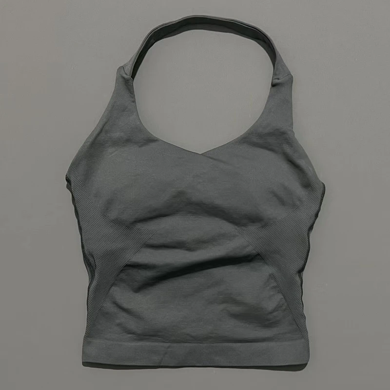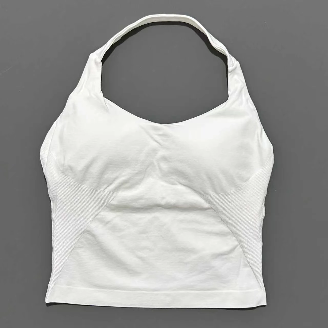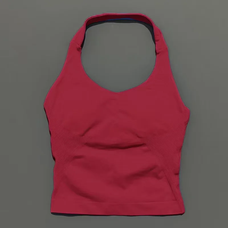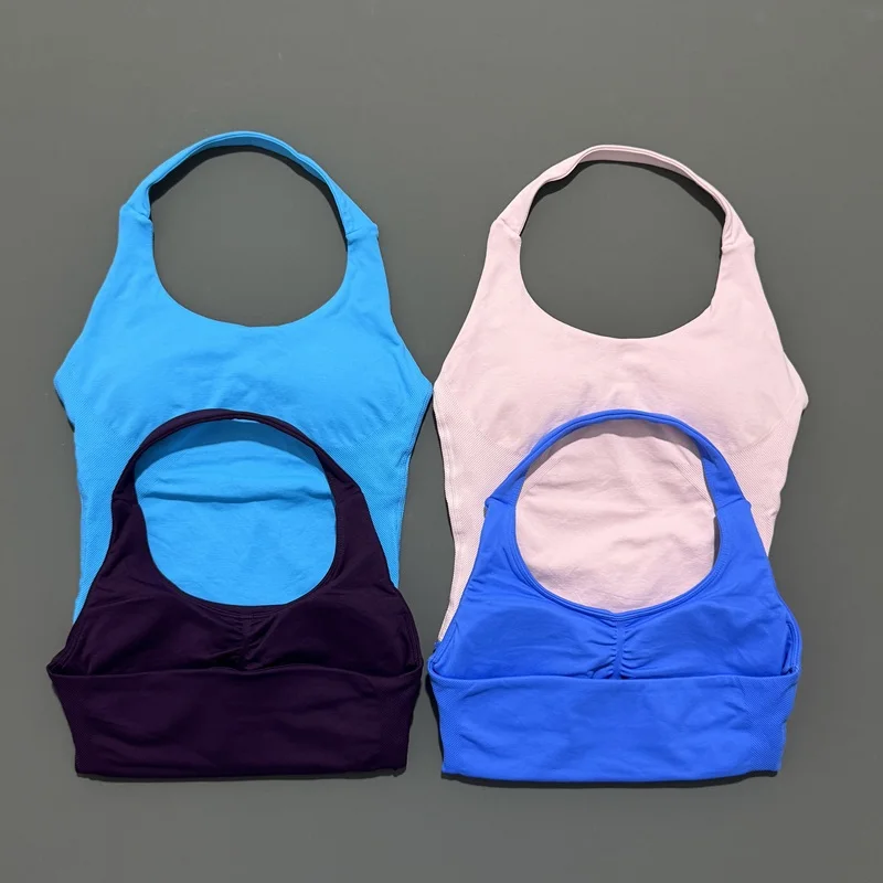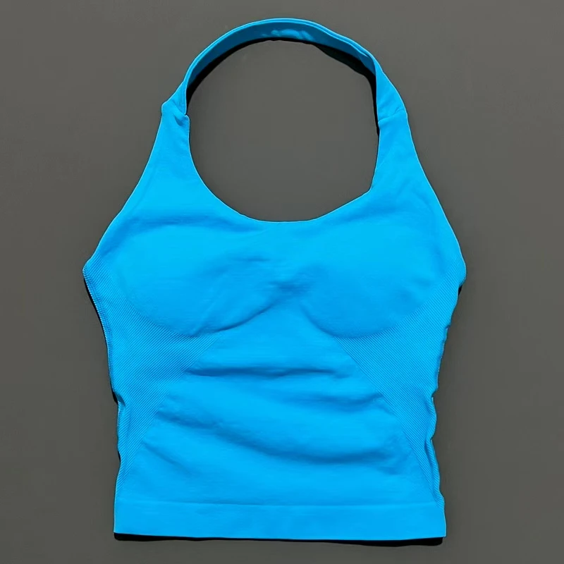 Histello Longline Strappy Top Women Sports Tank Halter Seamless Ruched Backless Gym Activewear Workout Yoga Fitness Tops