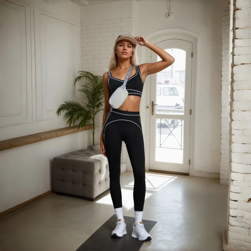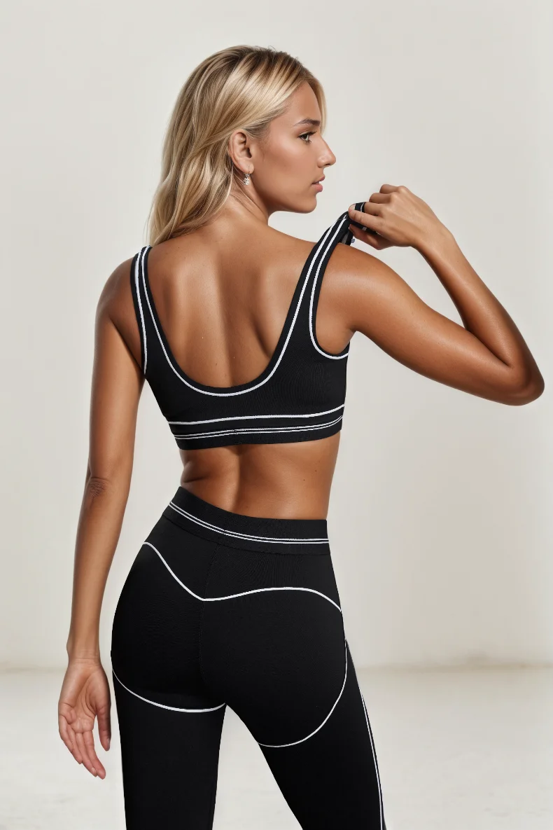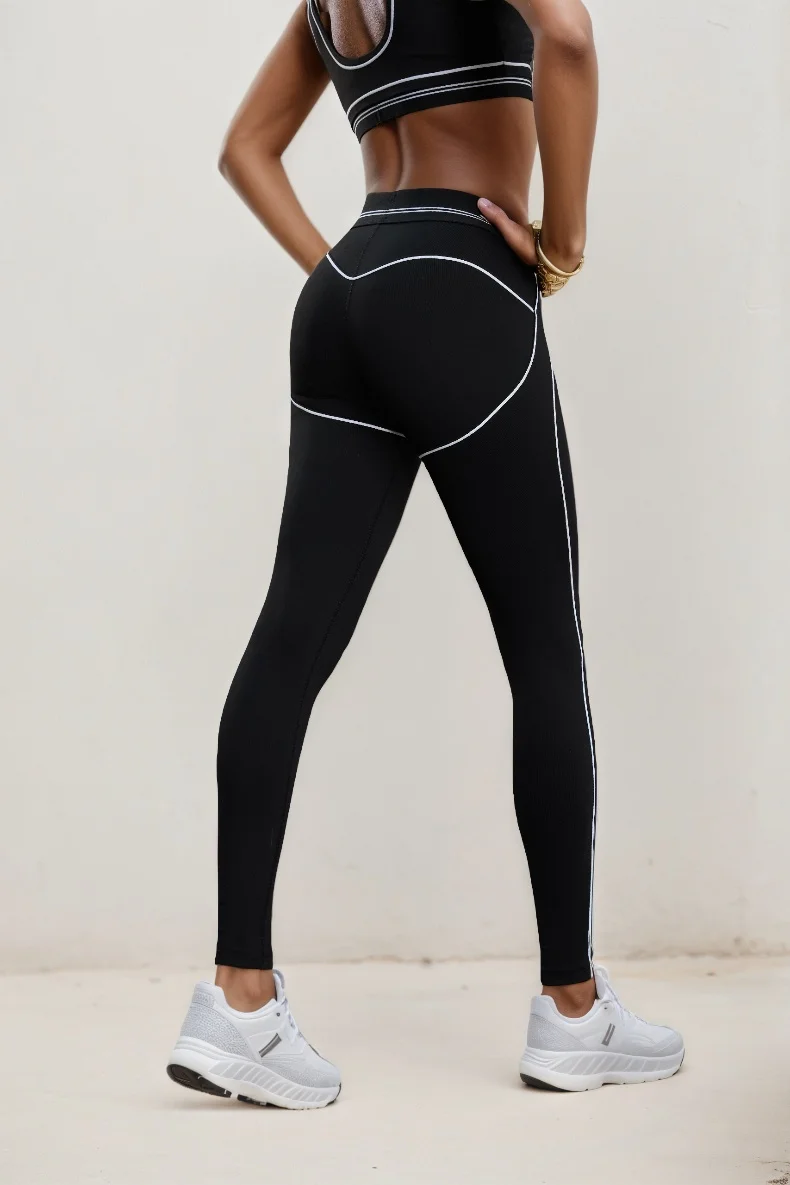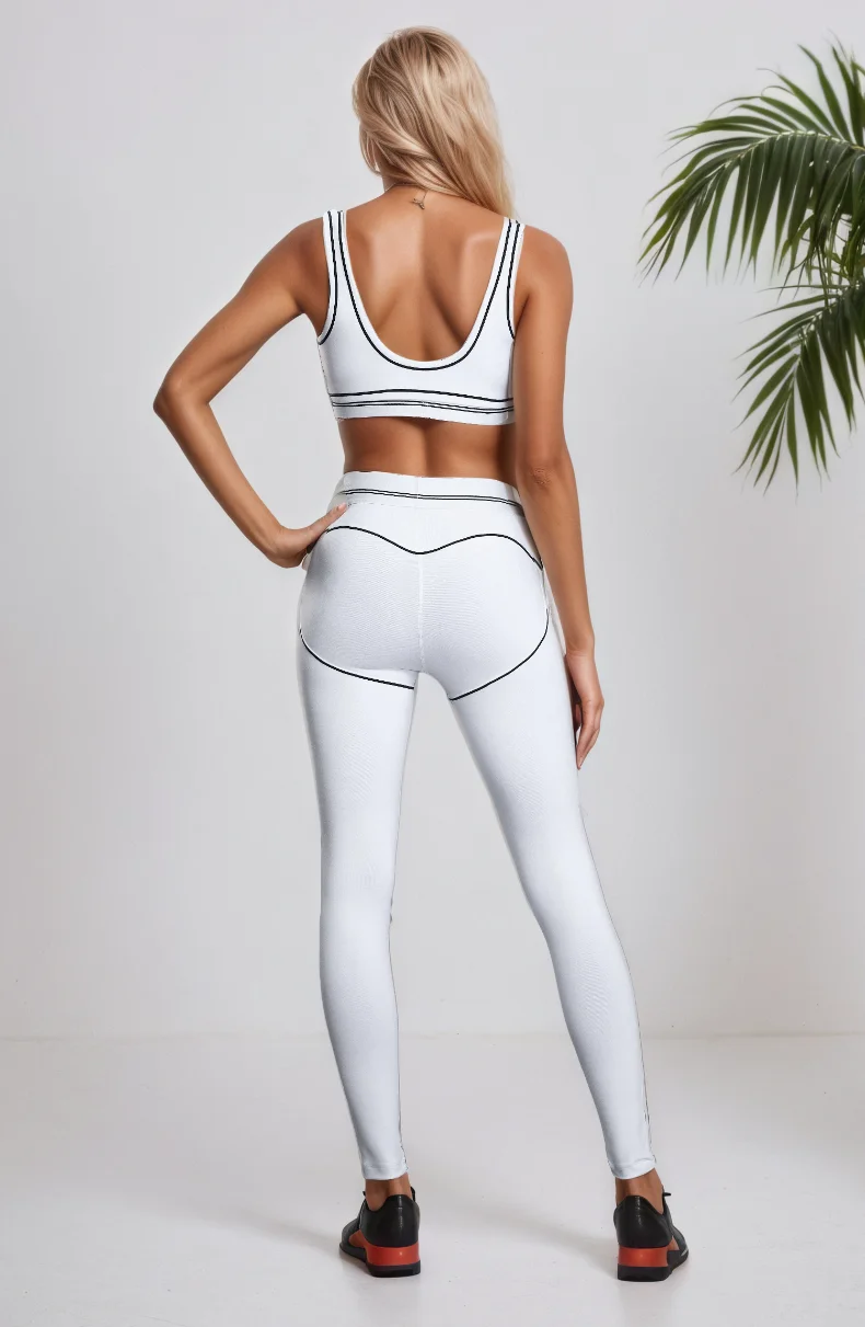 Mermaid Curve High Strength Gathering Naked Sports Fitness Bra Color blocked Peach Hip High Waist Yoga Pants 2-piece Set