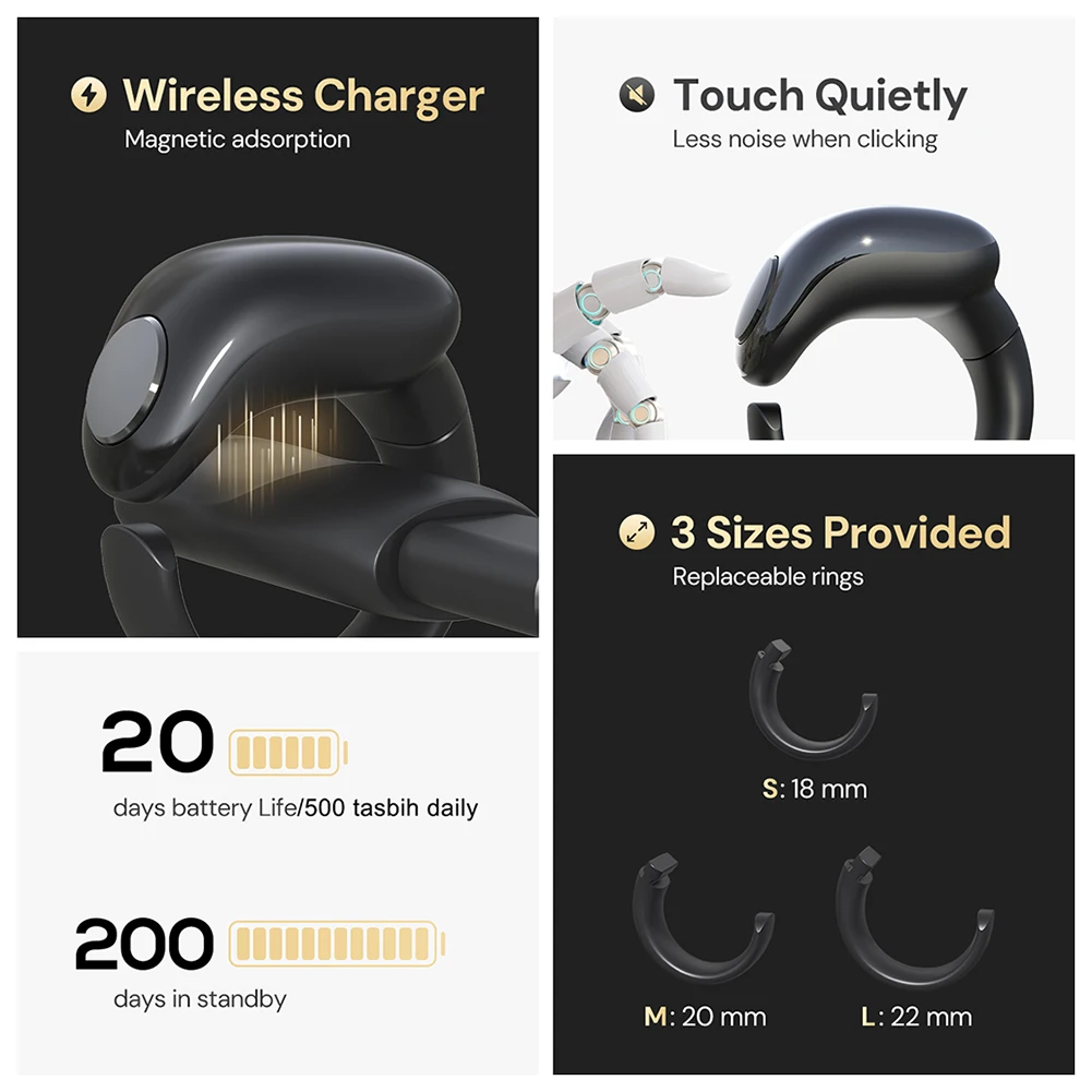 4. Unique Design with Three Sizes: Each package of the tasbih counter includes rings in three different sizes to cater to everyone's needs, ensuring a perfect fit for all users.