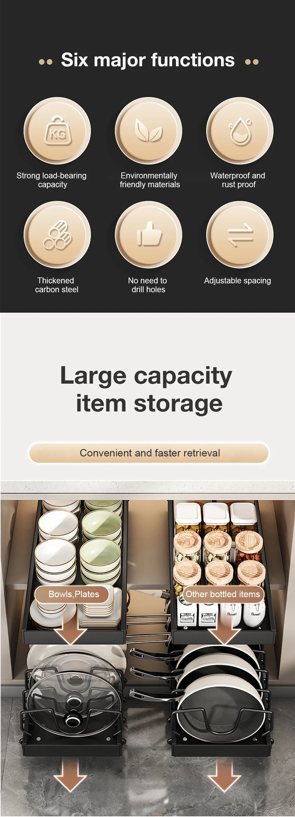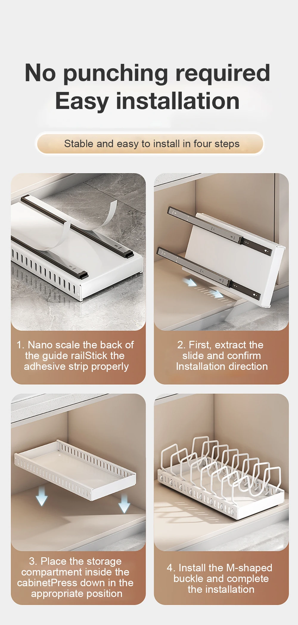 New Kitchen Multifunctional Organizer Pull Out for Pots/Pans Sliding Lid