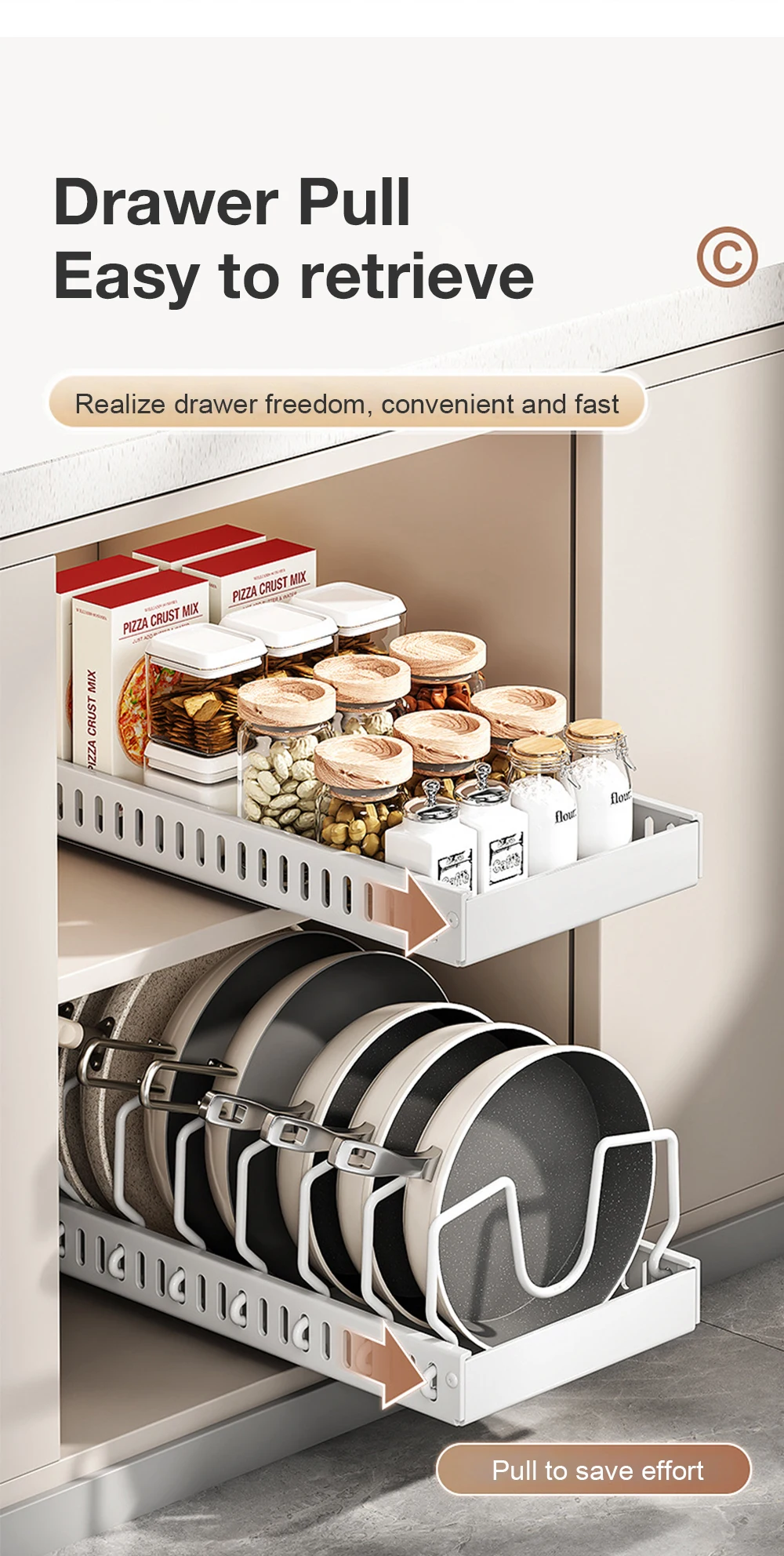 New Kitchen Multifunctional Organizer Pull Out for Pots/Pans Sliding Lid Holder Spice Rack & Dish Drying Racks Drawer Organizer