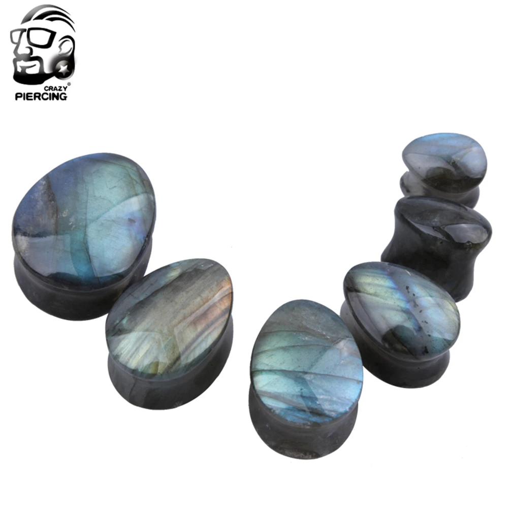 Organic Labradorite Stone Ear Plugs Tunnels Flesh Double Flare Ear Gauge Expander Round Piercing Oreja Labret Helix Body Jewelry