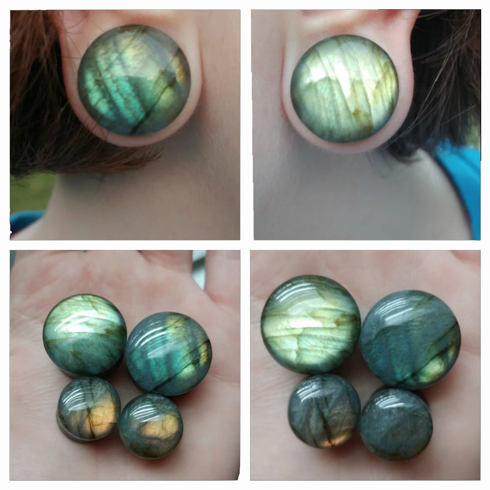 2. Due to the nature of labradorite stone, pairs may be mismatched, have little/no flash, different colors, or have rough spots on the face of the plug or wearable, but it would not affect wearability.
