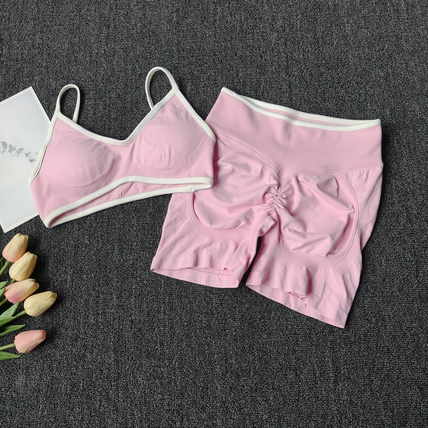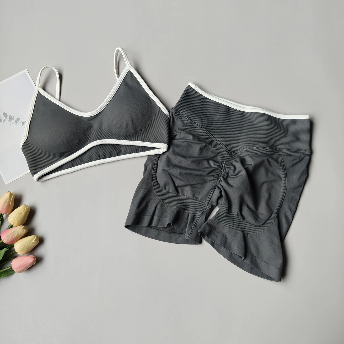 Peach Buttock Yoga Suit Women Gym Seamless Suspender Gathering Bra High Waist Hip Lifting Belly Tightening Shorts Fitness Set