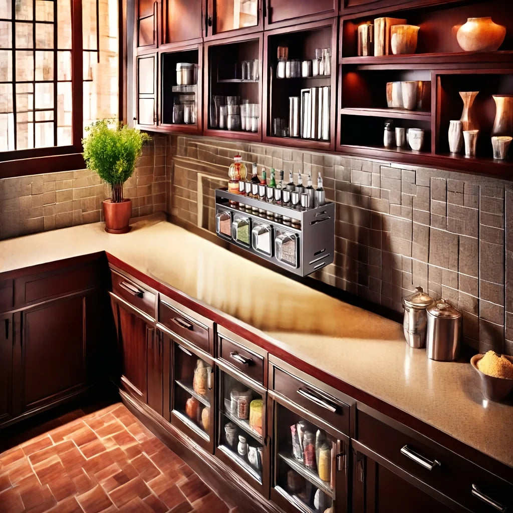 Wall Mount Spice Rack Organizer No Drilling Space Saving Durable Aluminum Kitchen Storage Must Have for Home