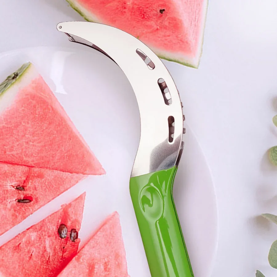 Watermelon Slicer Cutter Stainless Steel Color Non-slip Plastic Wrap Handle Not Hurt Hands Cantaloupe Kitchen Fruit Cutting Tool