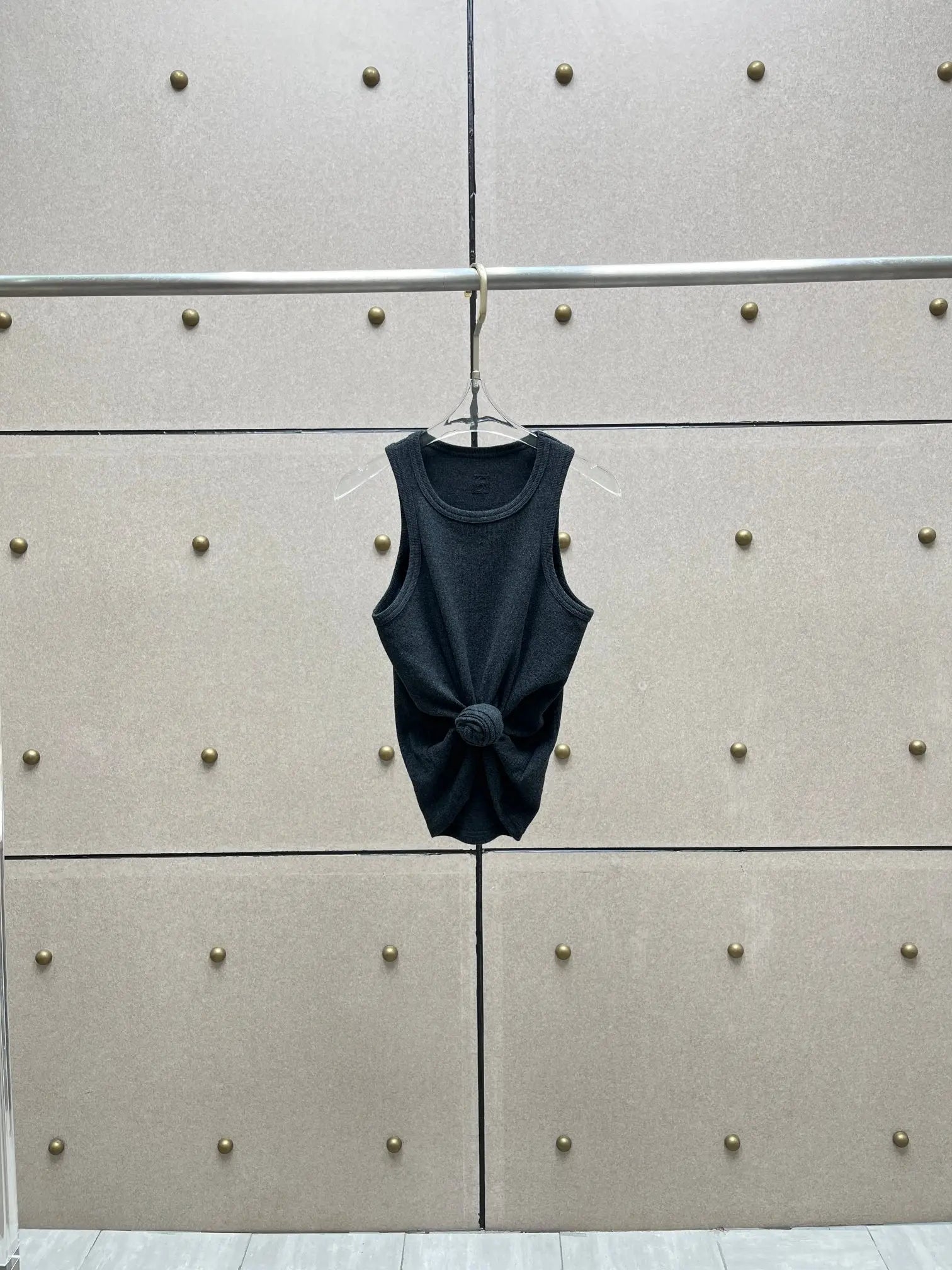Y2K knotted twist knitted threaded round neck Top women fashionable and versatile navel padded shoulder short-sleeved T-shirt